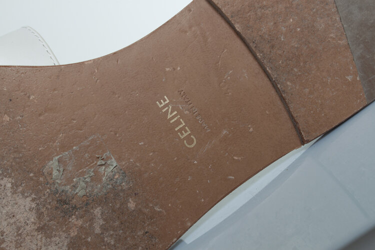 • Celine, Triumph muiltje in wit kalfsleer. Het artikel verkeert in goede staat.