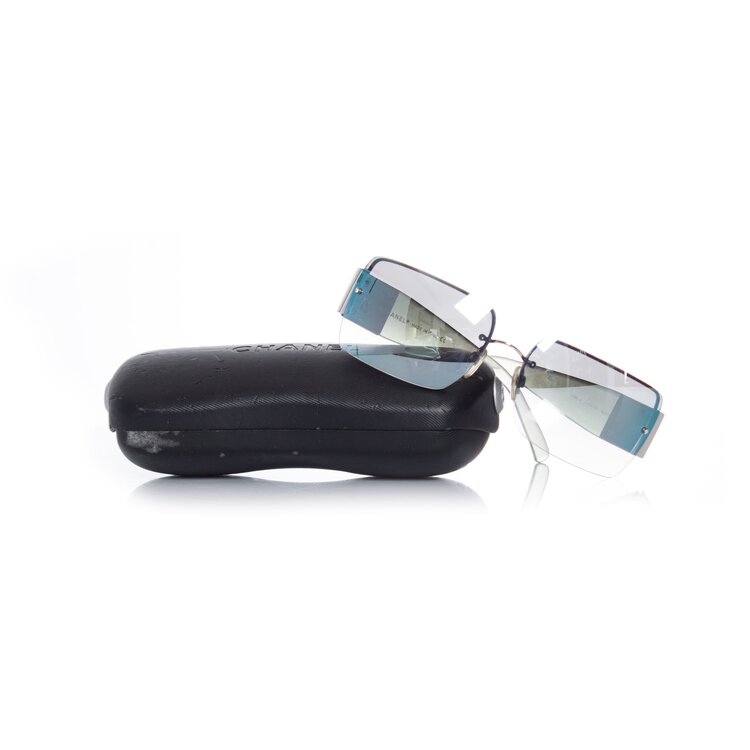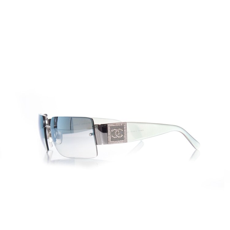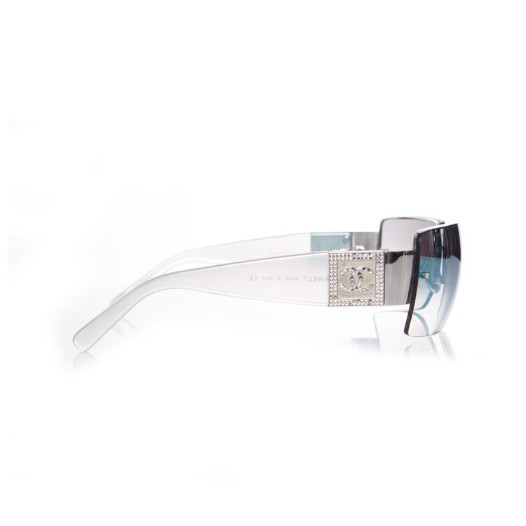 Chanel, iriserende frameloze steentjes zonnebril 4095-B. Een kant mist een paar steentjes, verder is het item in uitstekende staat. Komt met de originele doos.