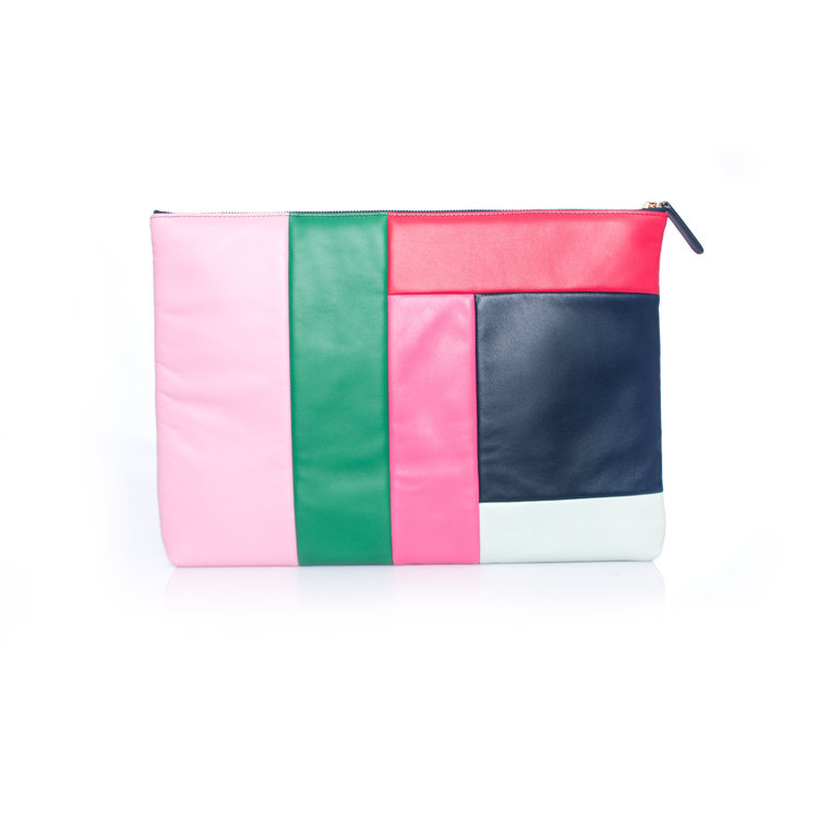 Chanel, Lederen multikleur patchwork clutch (2015). Het item is nieuw en komt met de dustbag en certificaat. Het item kan ook gebruikt worden als laptop hoes.