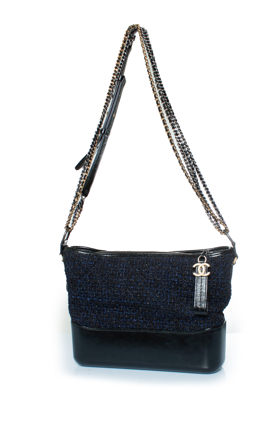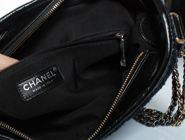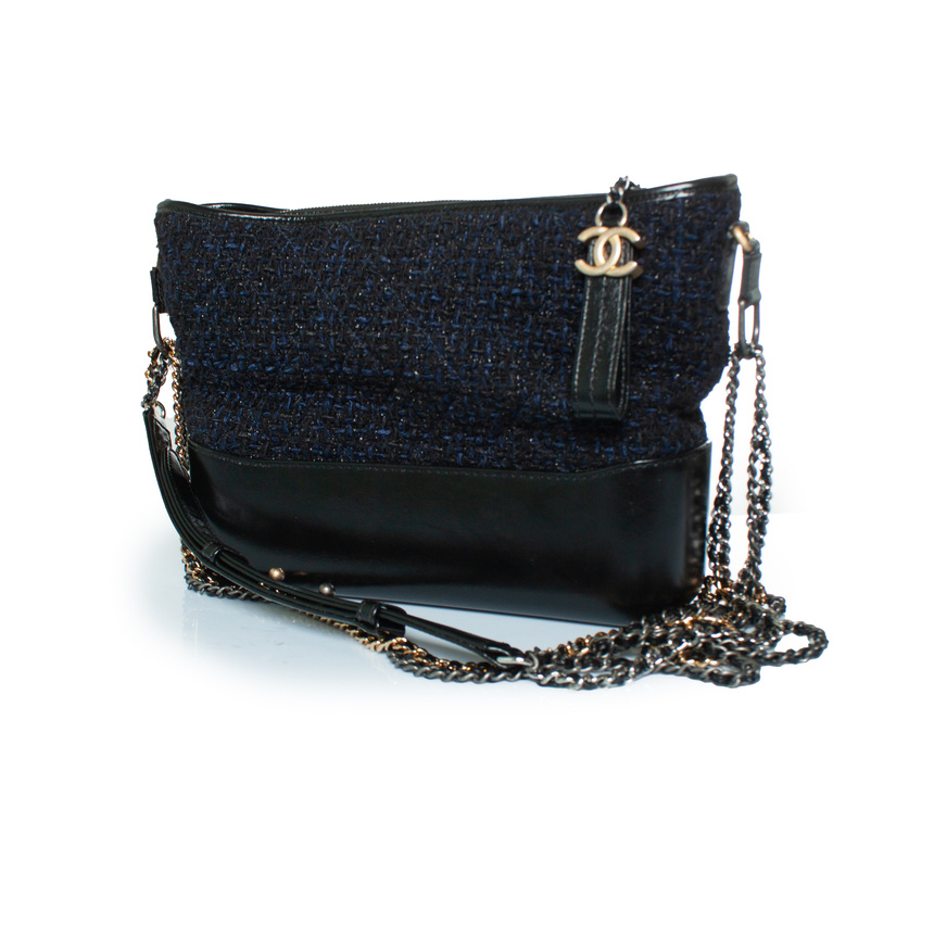 Chanel, middelgrote Gabrielle tweed crossbody in zwart en marineblauw. Het artikel verkeert in zeer goede staat. Wordt geleverd met authenticiteitsbewijs en serienummersticker.