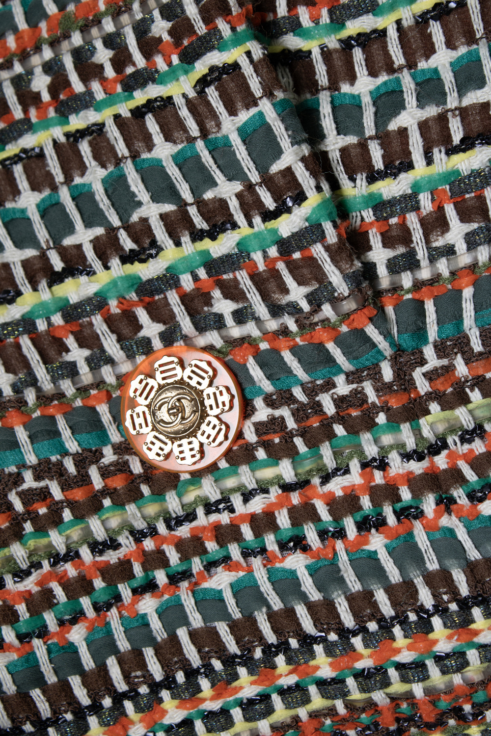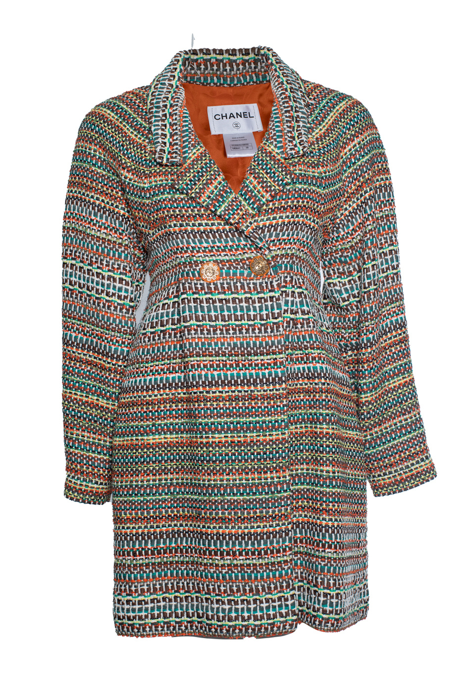 • Chanel, Paris Seoul double-breasted tweed jas in multicolor. Het artikel verkeert in zeer goede staat.