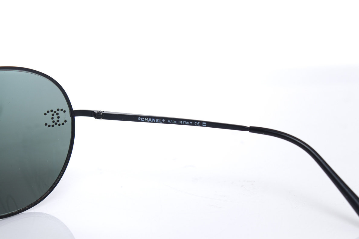 • Chanel, Vintage schild zonnebril met CC in strass-steentjes. Het artikel is in zeer goede staat.