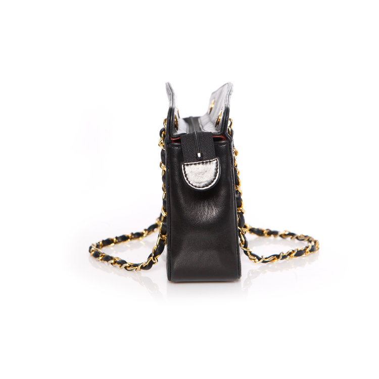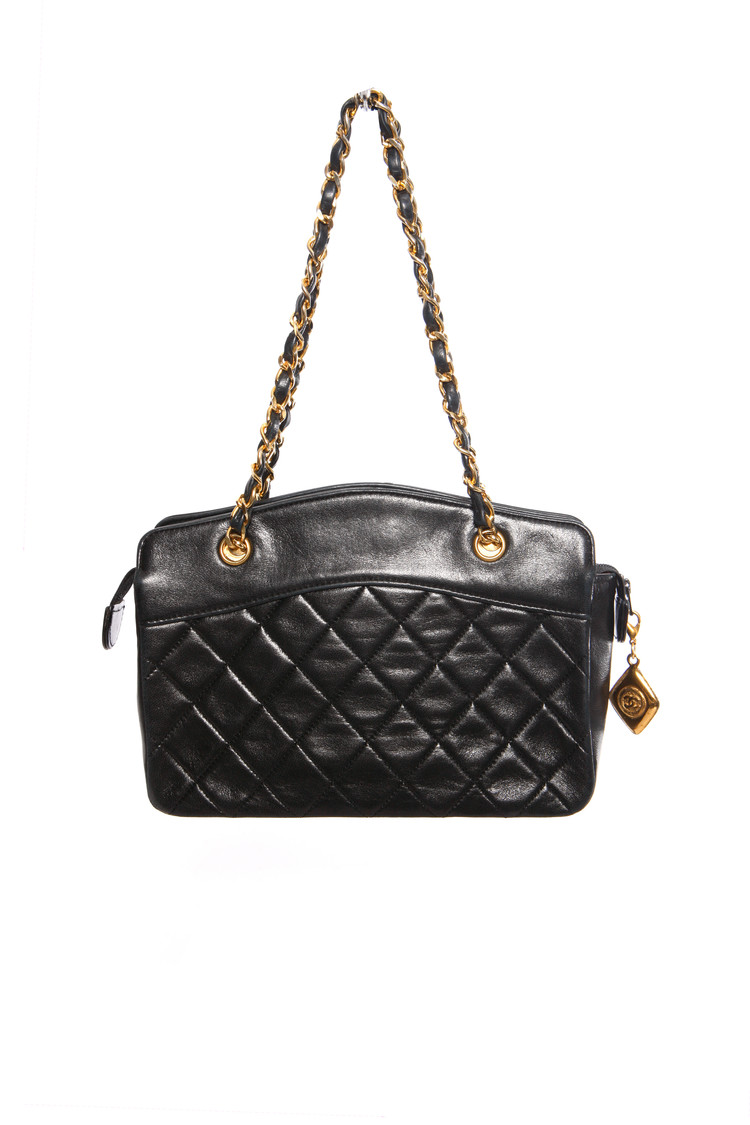 Chanel, vintage zwarte gewatteerde kalfsleren shopper / schoudertas met gouden hardware. Dit item vertoont enkele kleine tekenen van veroudering / dragen op de hoeken van de bodem, verder in goede staat. Deze tas wordt geleverd met de originele stofzak en