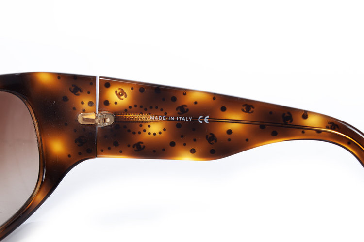 Chanel, bruine schildpad zonnebril met CC strass steentjes. Het item is in goede staat, een paar strass-steentjes ontbreken. Het item wordt geleverd met dustbag en koffer. Een paar hele lichte krasjes op de kappen