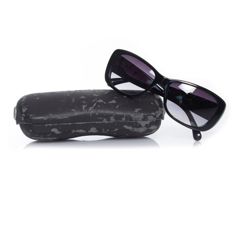 Chanel, zwarte camellia zonnebril. Het item is in goede staat met enkele kleine krasjes op frame en lenzen. Wordt geleverd met hoes. Hoesje is beschadigd.