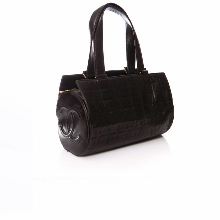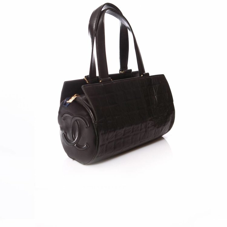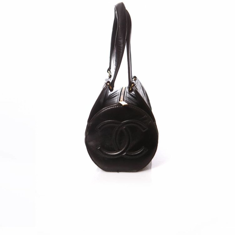 Chanel, vintage zwarte gewatteerde kalfsleren shopper / schoudertas met gouden hardware.