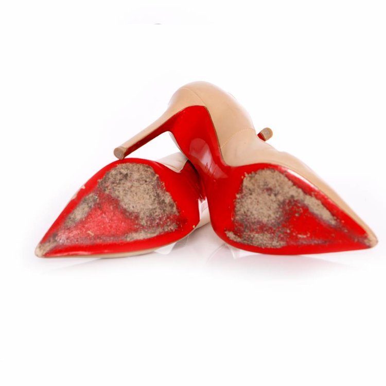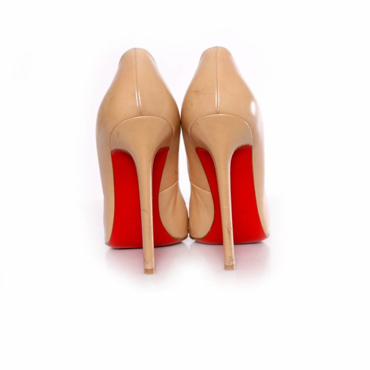 Christian Louboutin, Nude kleurige leren pump in maat 39. Dit item is in goede staat, heeft een kleine beschadiging aan de rechterhek. Het item komt met de originele dustbag.