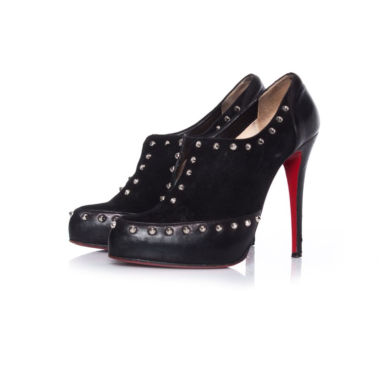Christian Louboutin, zwarte astraqueen 120 hakken. Enkele kleine slijtplekken op de hielen en de rechterschoen mist een stud op de binnenvoet, verder in goede staat. Dit item wordt geleverd met de originele doos.