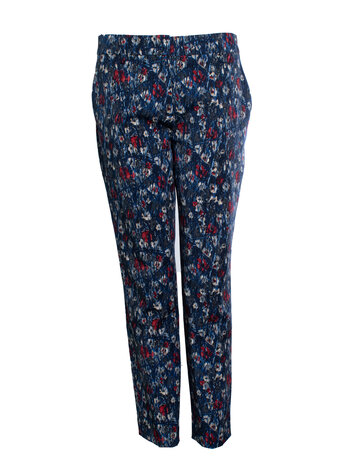 Prada, pantalon met bloemen- en strepenmotief in blauw. Het artikel verkeert in zeer goede staat.