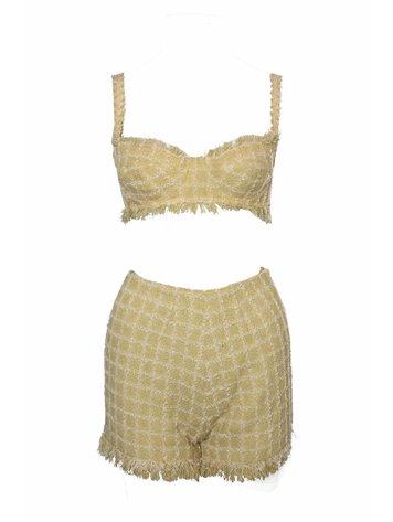 Jean Paul Gaultier, vintage roest kleurig tweedelig krijtstreep pak. Colbertjasje met ritssluiting in maat 36 en pantalon in maat 36. Het product is in goede staat en beperkt gebruikt.