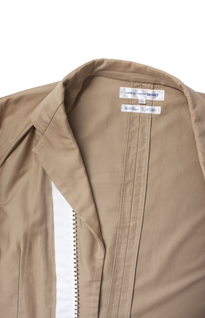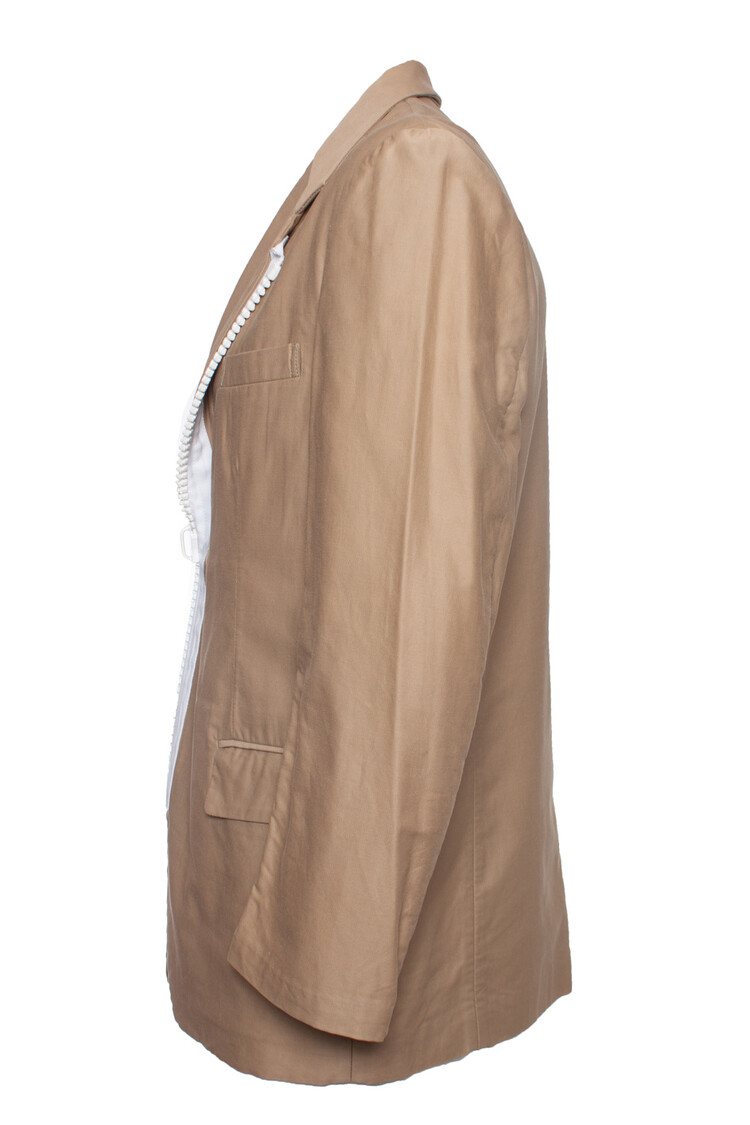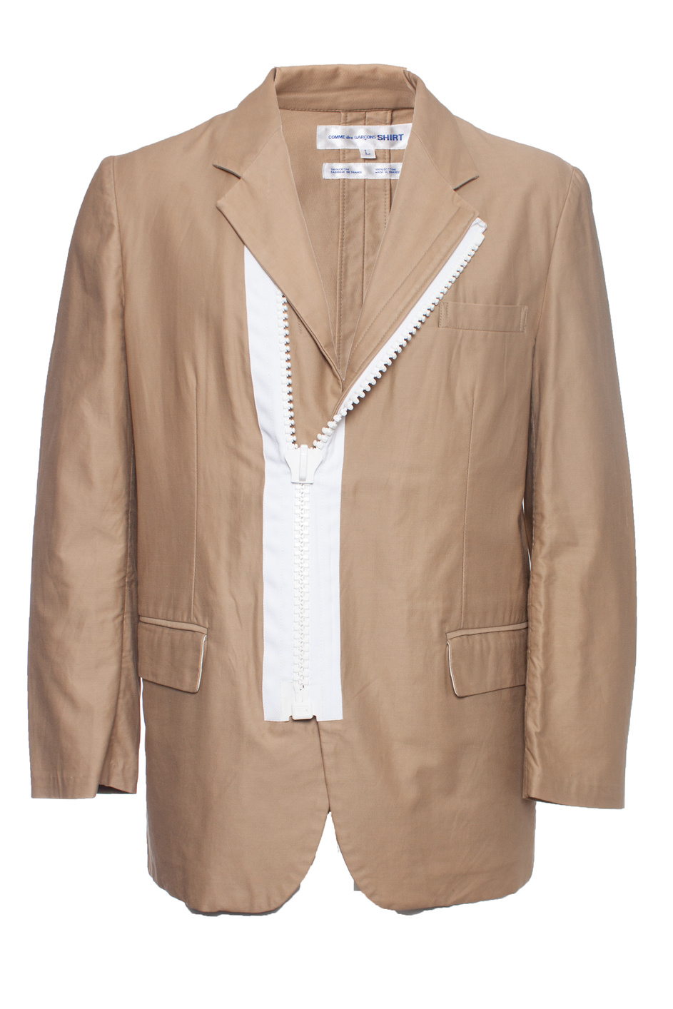 • Comme Des Garçons, Bruine blazer met oversized rits. Het item is in goede staat met een paar kleine vlekjes in de nek (rug).
