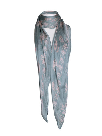 Alexander McQueen, groene zijden sjaal met doodshoofd. Het artikel verkeert in zeer goede staat.