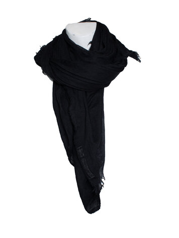 Rick Owens, Babel SS19 zwarte sjaal met ruwe franjes. Het artikel verkeert in zeer goede staat.