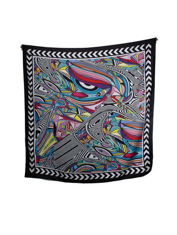 Misha, Vierkante sjaal met grafische print (1 van 3). Het artikel verkeert in zeer goede staat en wordt geleverd met doos en authenticiteitsbewijs.