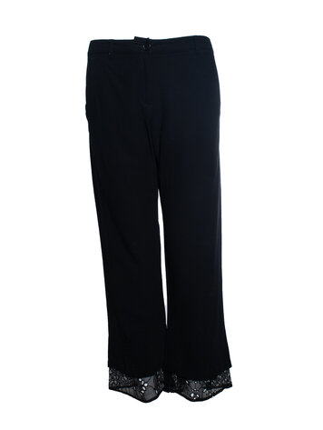 Ann Demeulemeester, dubbellaagse zwarte pantalon met opengewerkte borduursels. Het artikel verkeert in goede staat.