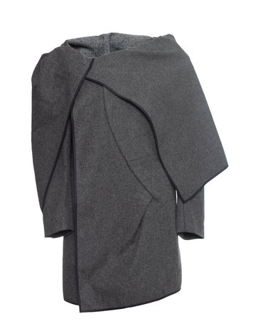 Comme des Garçons, grijs wollen asymmetrische jas met veiligheidspeld. Het item is nieuw - ongedragen.