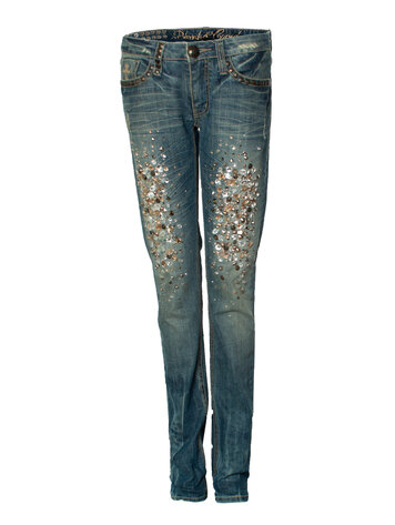 Blessed & Cursed, embellished jeans. Het item is in goede staat, sommige studs zitten los of ontbreken.