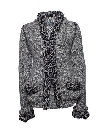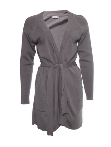 DNA, gebreid bontgilet in grijs. Het artikel is in zeer goede staat.