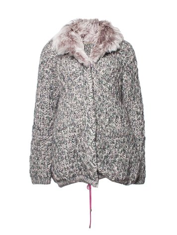 Maje, Blazer met zwart en zilverkleurige pailletten in maat 36 - S. Het jasje kan in twee kleuren gedragen worden als de pailletten omgekeerd worden. Aan de binnenzijde van de mouw zijn er wat pailletten af door het schuren tegen andere pailletten.