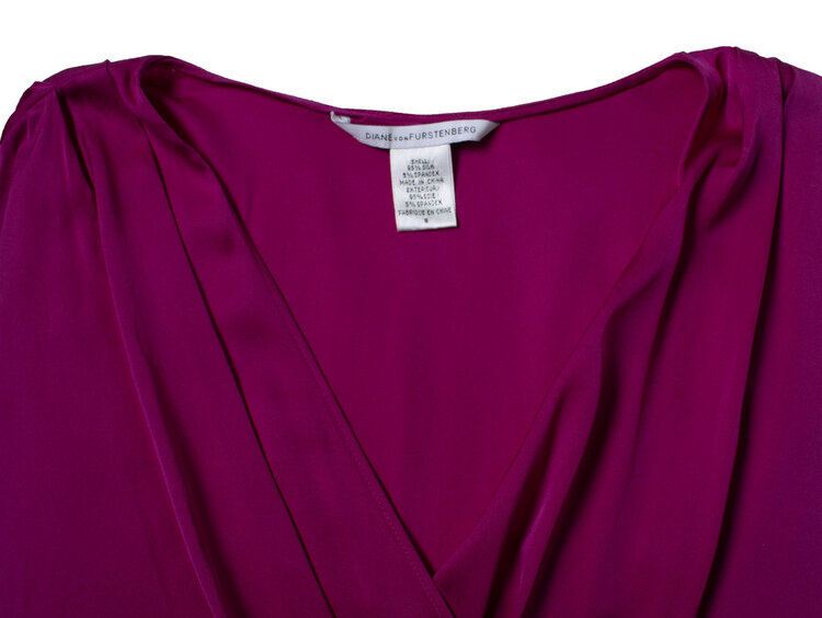 • Diane Von Furstenberg, roze zijden jurk met wikkelceintuur. Het artikel verkeert in goede staat.