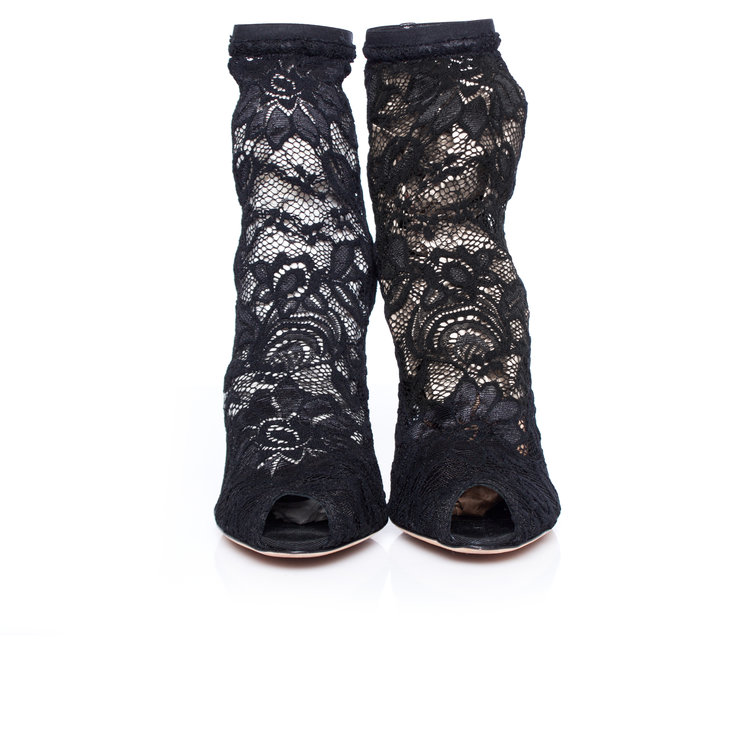 Dolce & Gabbana, peep-toe enkellaarzen van stretch kant in maat 37. Dit artikel is een keer gedragen en verkeert in een zeer goede staat. Komt met de originele doos