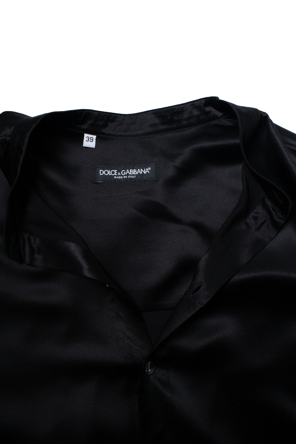 • Dolce & Gabbana, Zijden zwart overhemd met ronde hals. Het artikel verkeert in zeer goede staat.