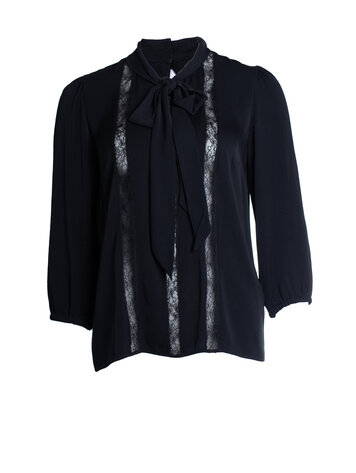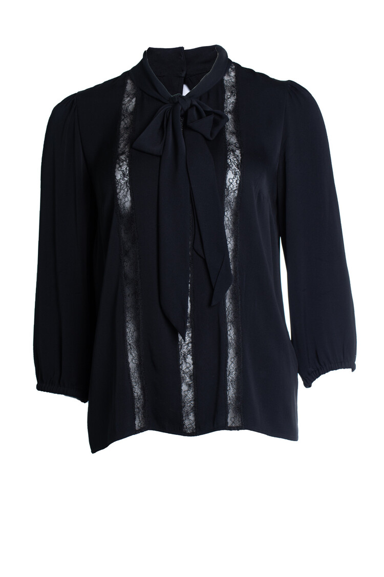 • Dolce & Gabbana, zwarte blouse met strik en kant. Het artikel verkeert in goede staat.