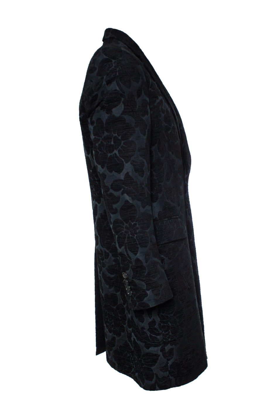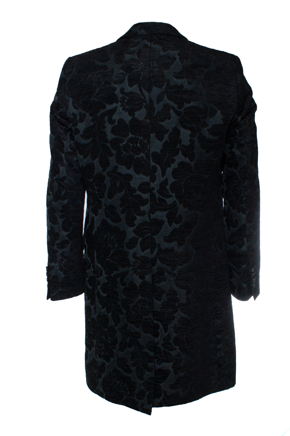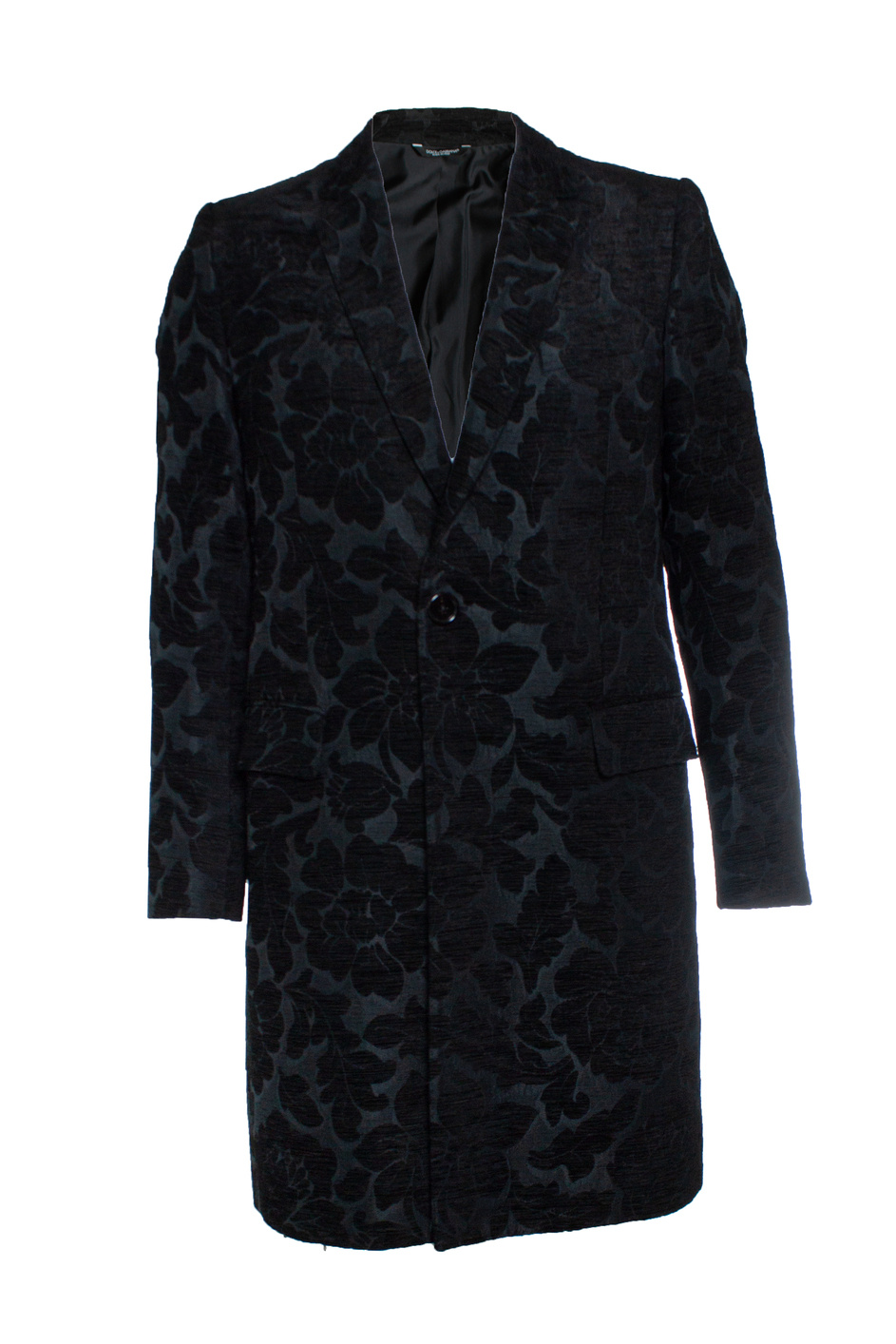 • Dolce & Gabbana, Zwarte jacquard geweven jas met bloemenprint. Het artikel verkeert in zeer goede staat.