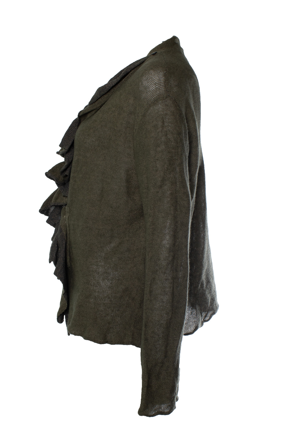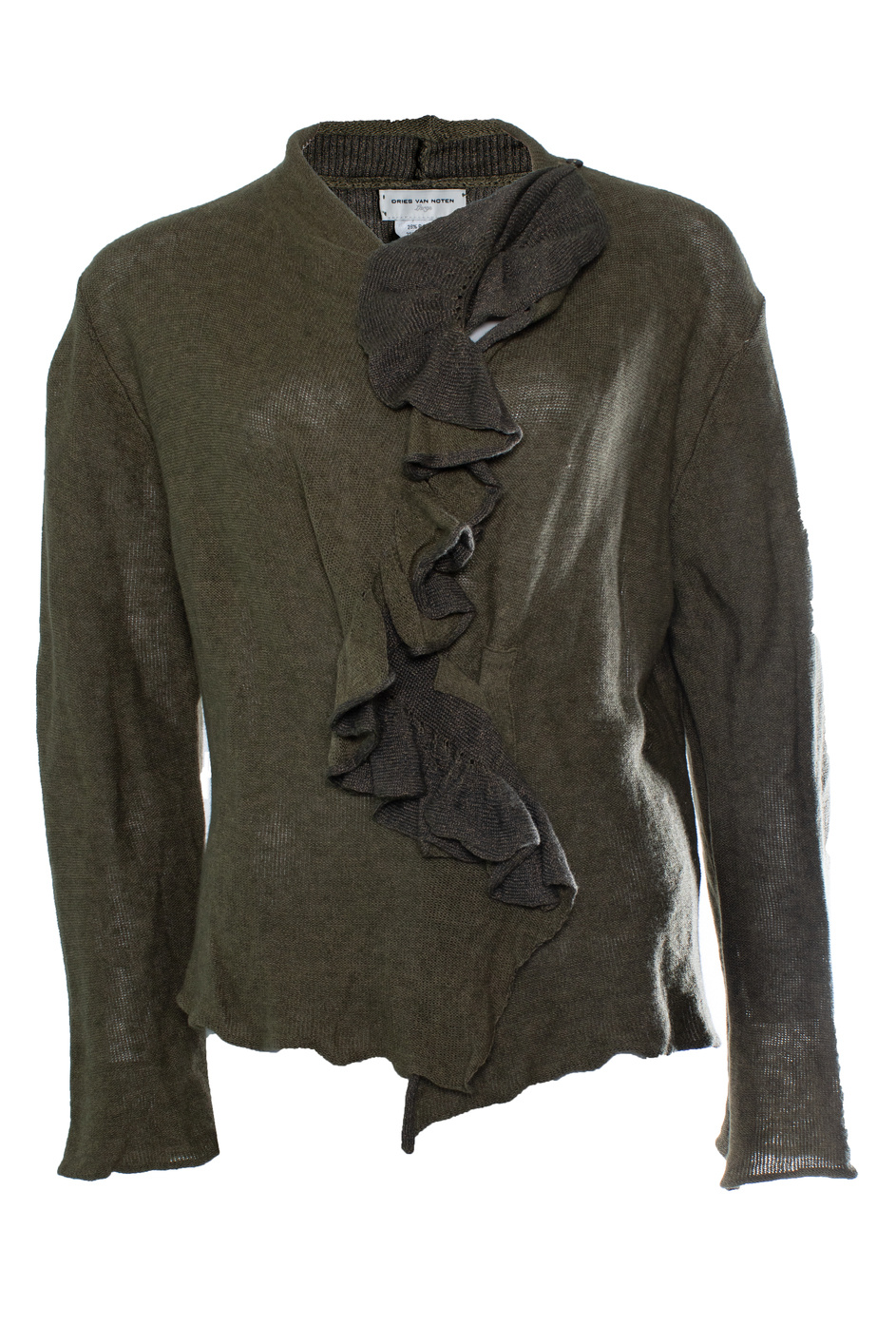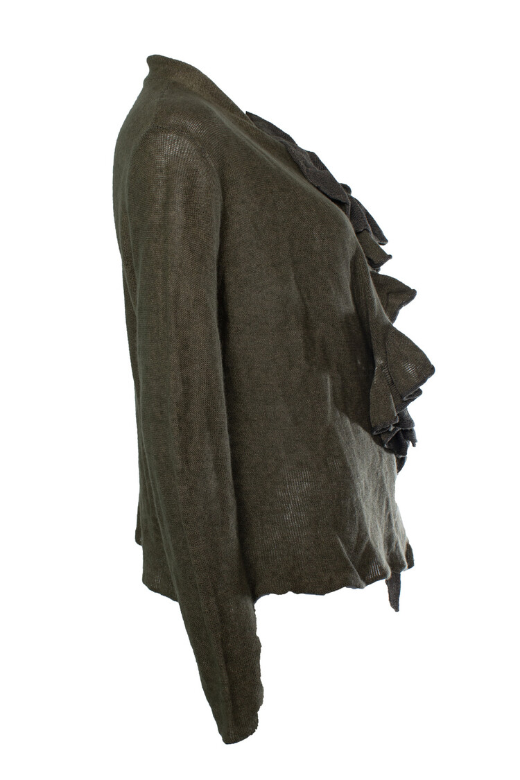 • Dries van Noten, groene cardigan met ruches. Het item is in zeer goede staat.