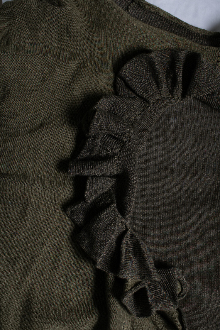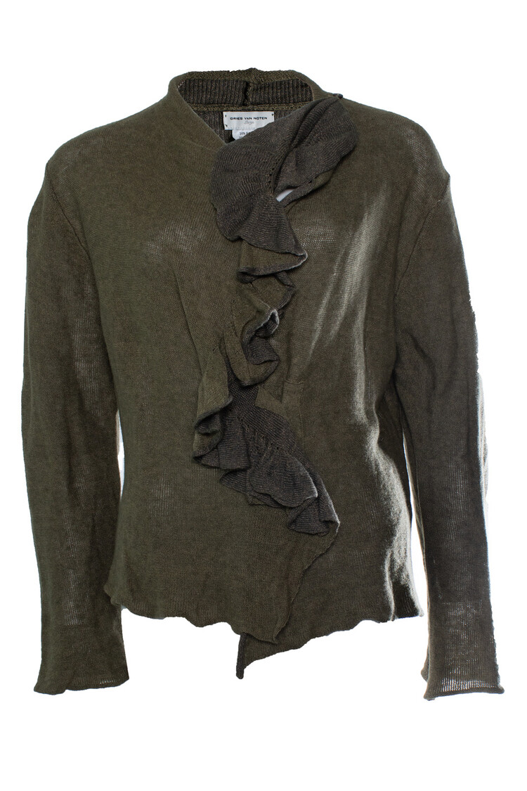 Dries van Noten, groene cardigan met ruches