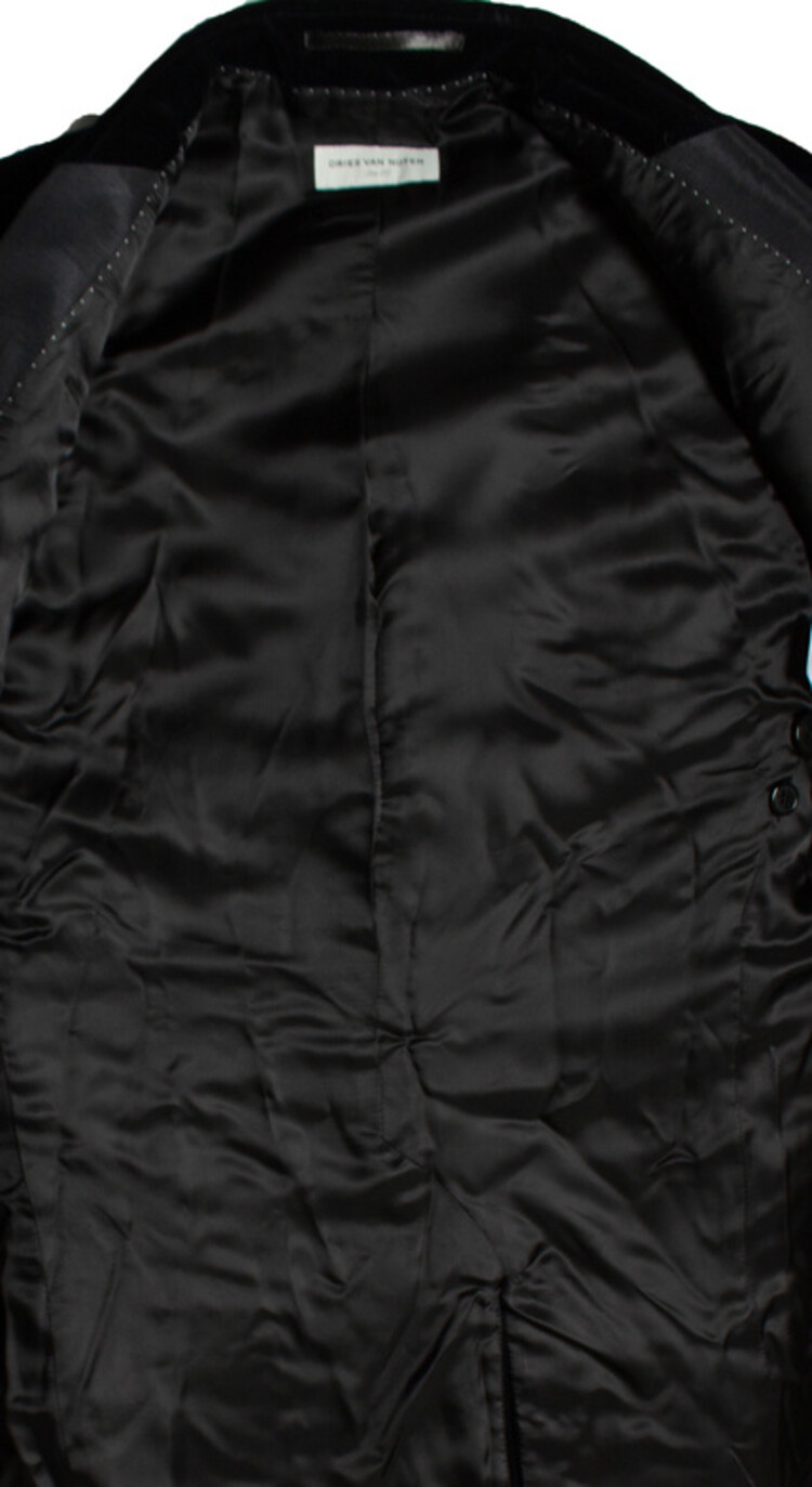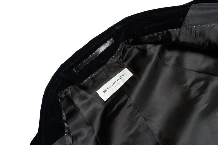• Dries van Noten, Marineblauwe fluwelen blazer. Het artikel is nieuw met kaartjes.