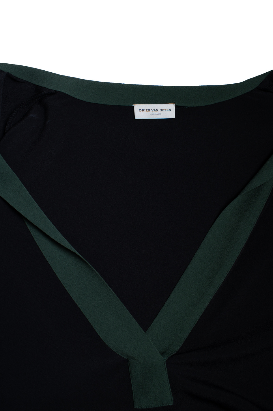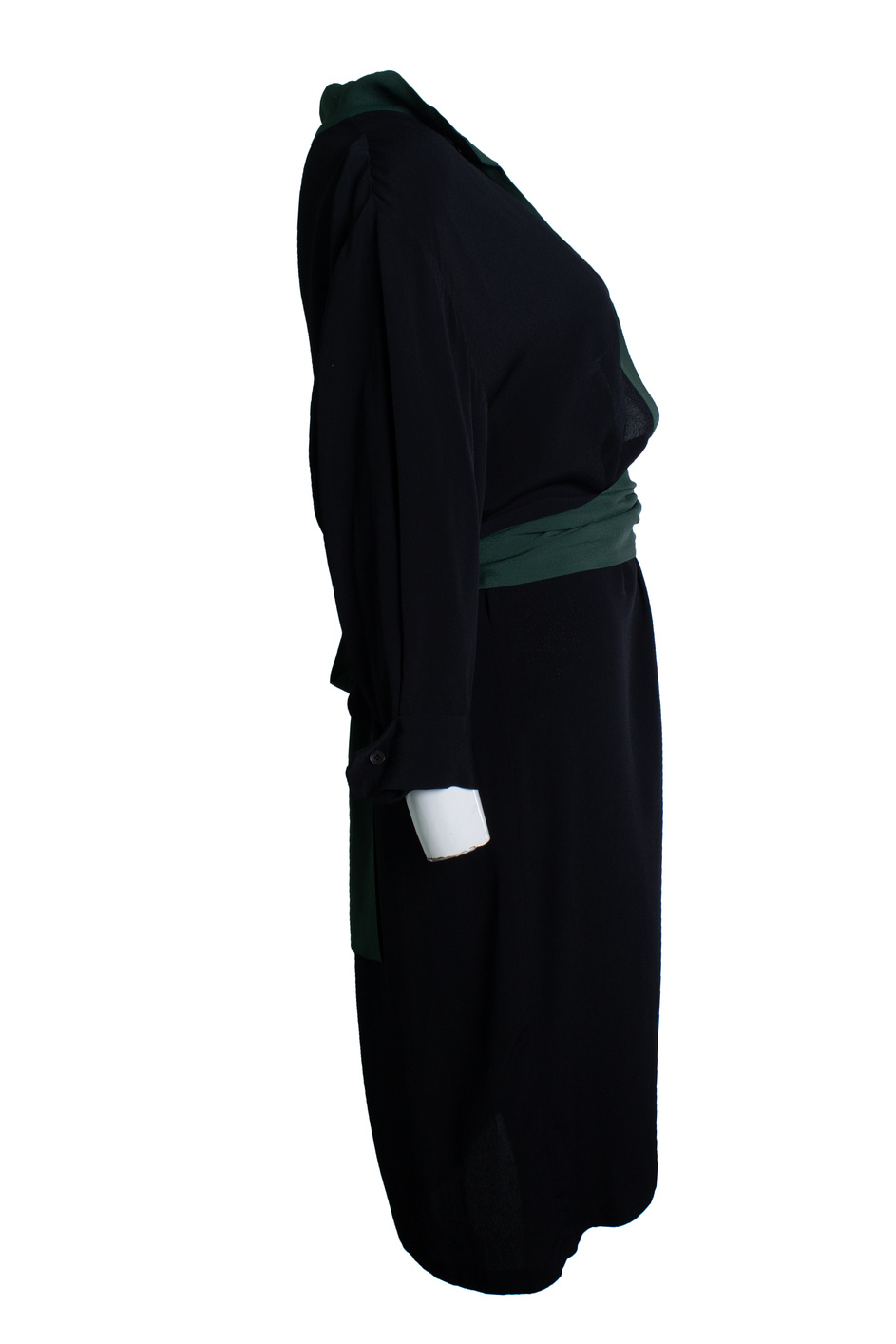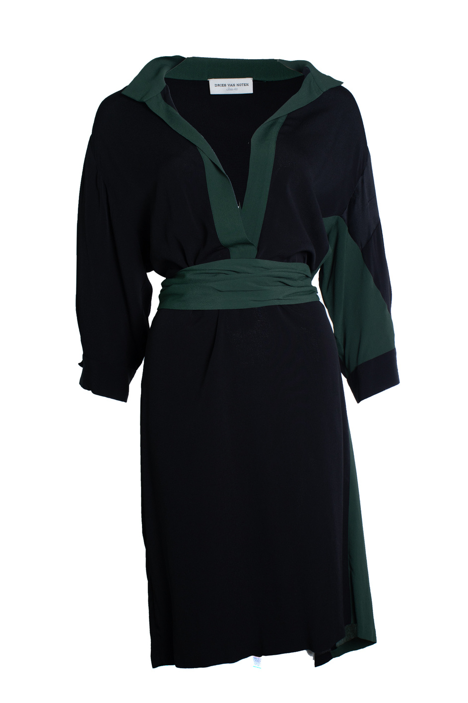• Dries van Noten, zwart-groene wikkeljurk. Het artikel verkeert in zeer goede staat.