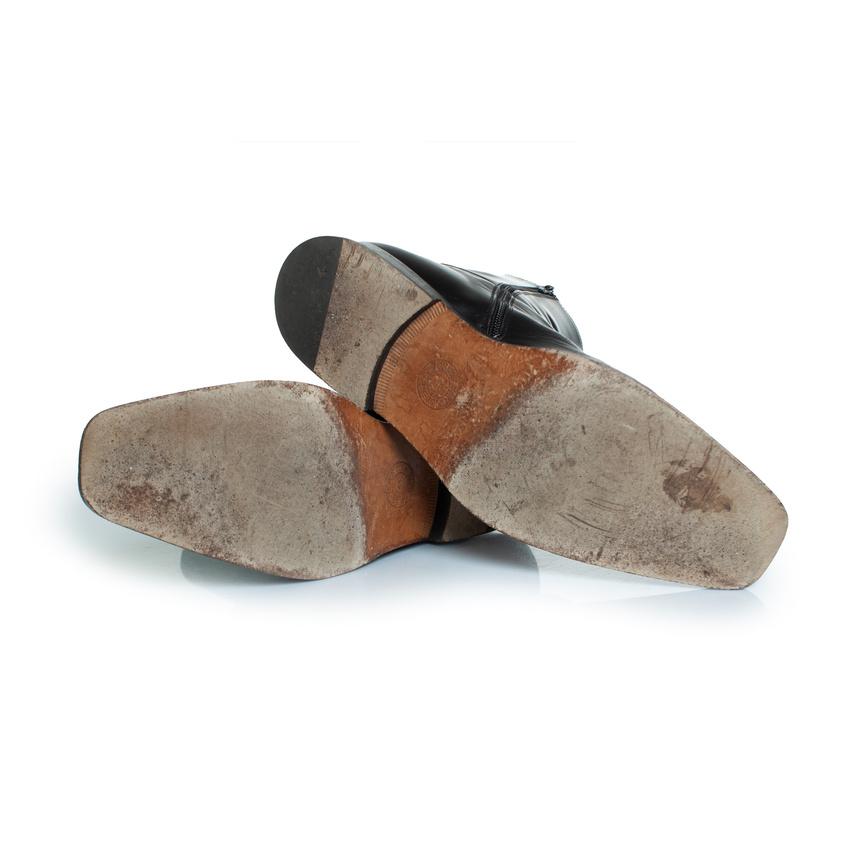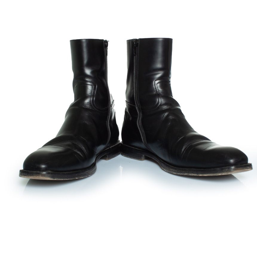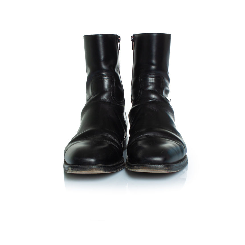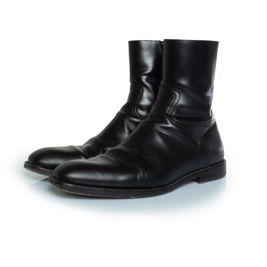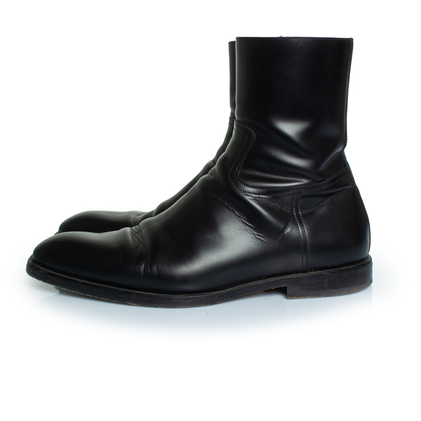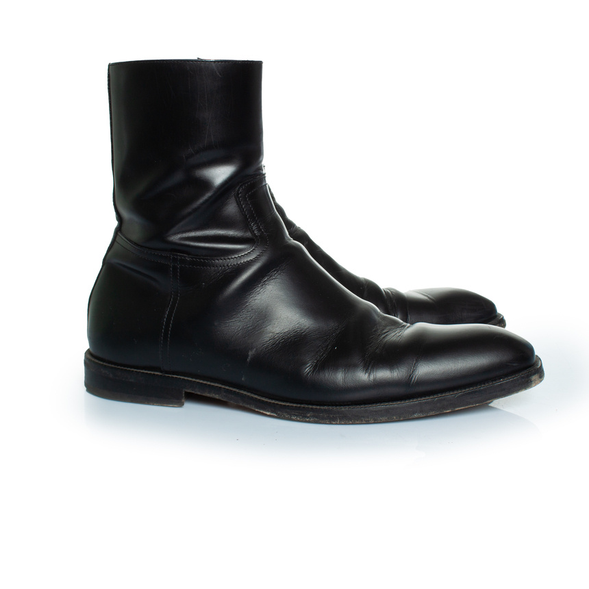 • Dries van Noten, Zwart leren laarzen met rits. Het artikel verkeert in goede staat. Kleine kreukjes in het leer.