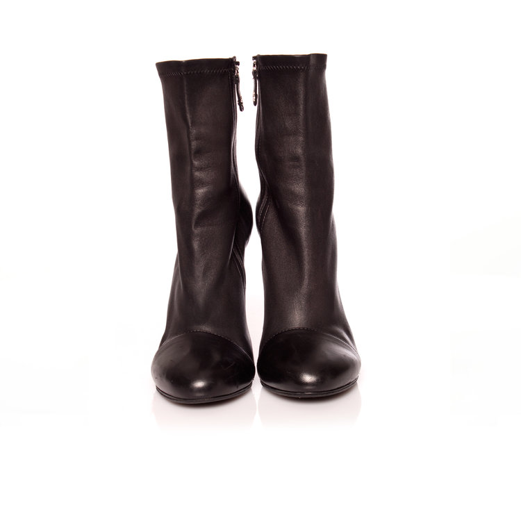• Dsquared2, zwart zacht stretch leren enkellaarsjes in maat 40. Beide kanten hebben lichte krasjes maar zijn verder in goede conditie. De hakken hebben een plastic beschermlaagje.