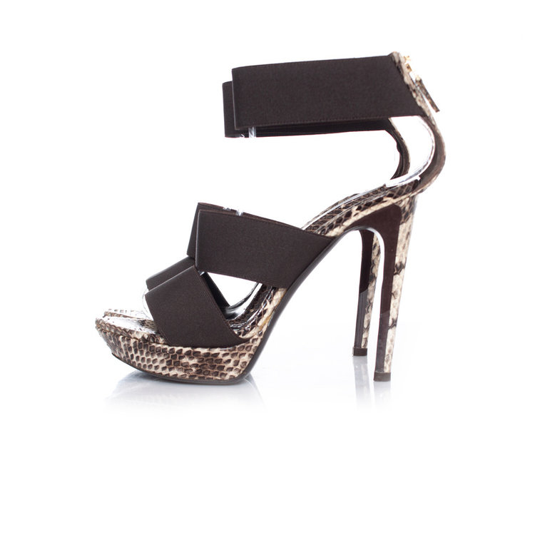 • Fendi, Python sandaal met elastieke bandjes. Het item verkeert in zeer goede staat. Komt met dustbag. Het item heeft plastic hulsjes om de hak.