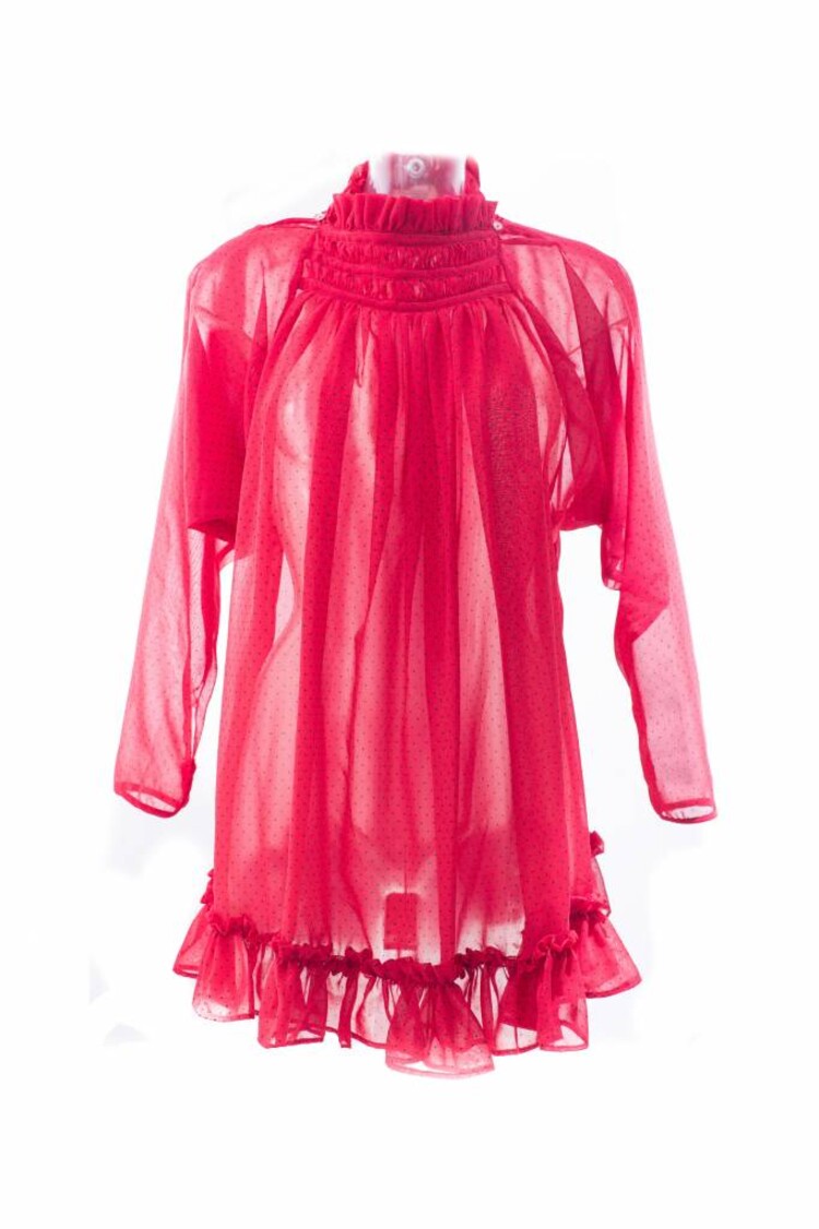Fong Leng, rood kleurige polkadot babydoll jurk.