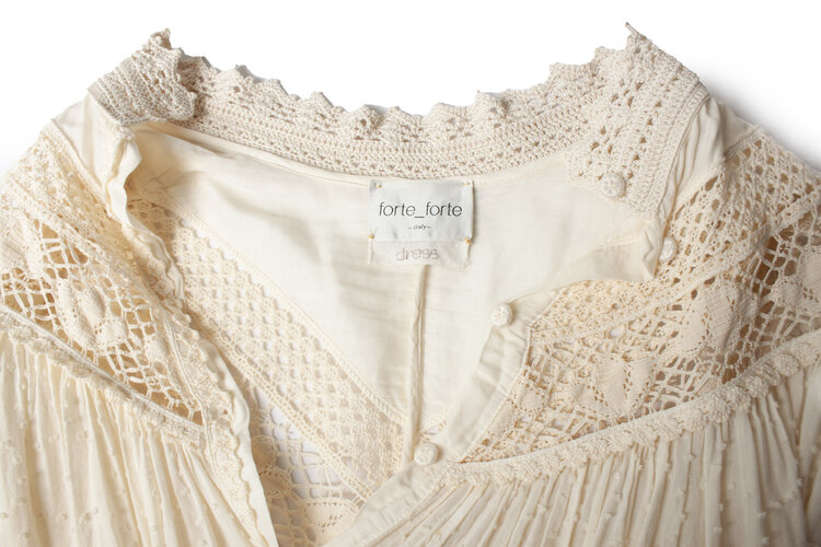 • Forte Forte, mini gestippelde jurk met gehaakte details. Het artikel is in zeer goede staat.