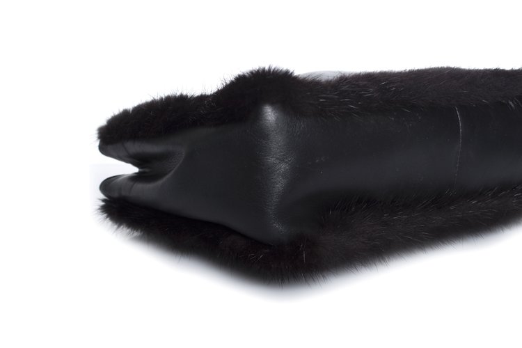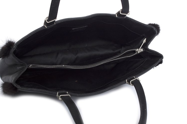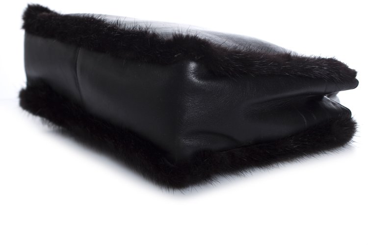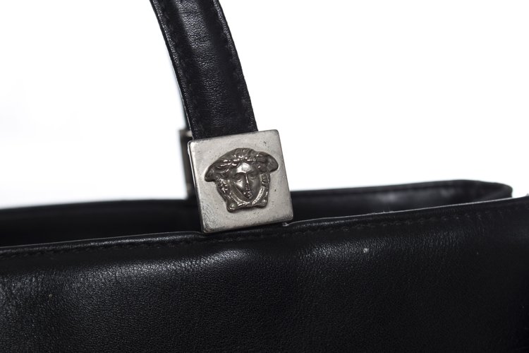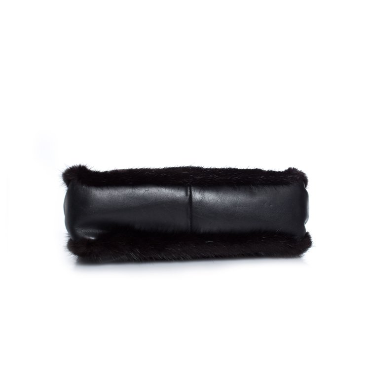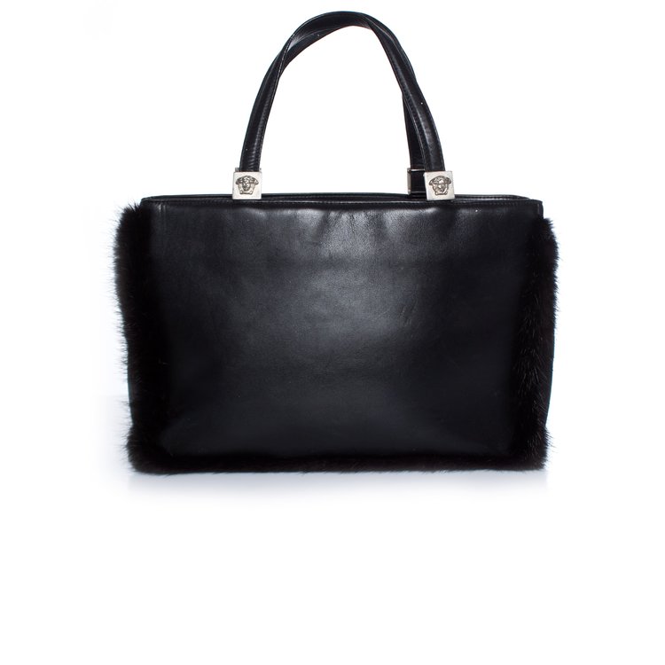 Gianni Versace, Vintage zwart leren handtas met bont aan de rand. Het item heeft hele lichte gebruikerssporen maar is in goede staat. Het item heeft een binnenvak met rits en twee zijvakken. Aan de hendels zitten 4 zilveren medusas.