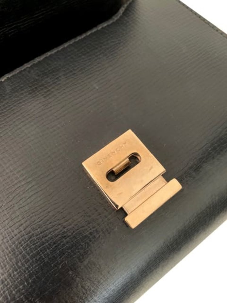 Givenchy, Pandora Box tas. Dit stuk is gemaakt van zwart leer met gouden hardware. Het item vertoont lichte gebruikssporen zowel binnen als buiten maar is in goede staat. Hoeken vertonen geen gebruikssporen.