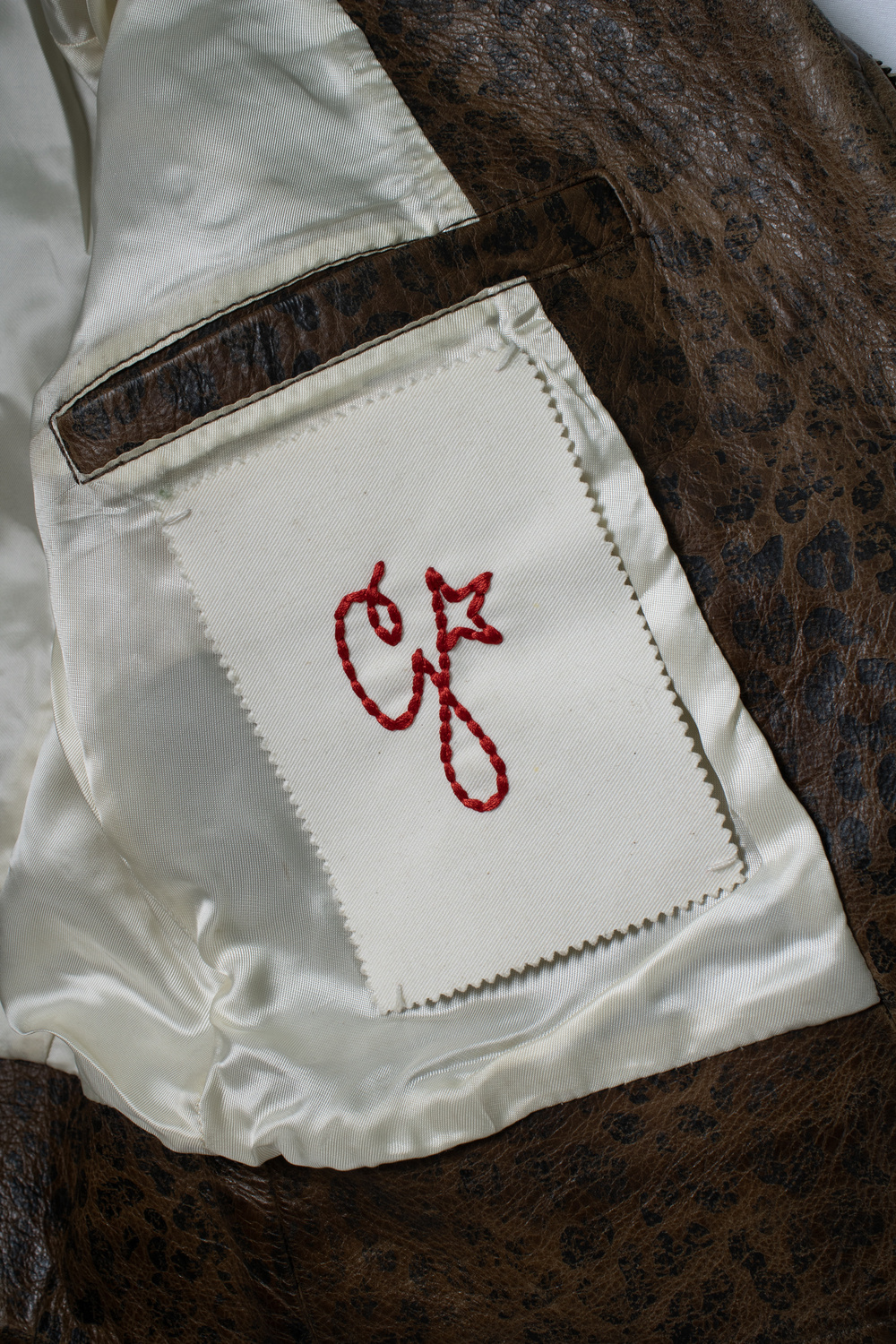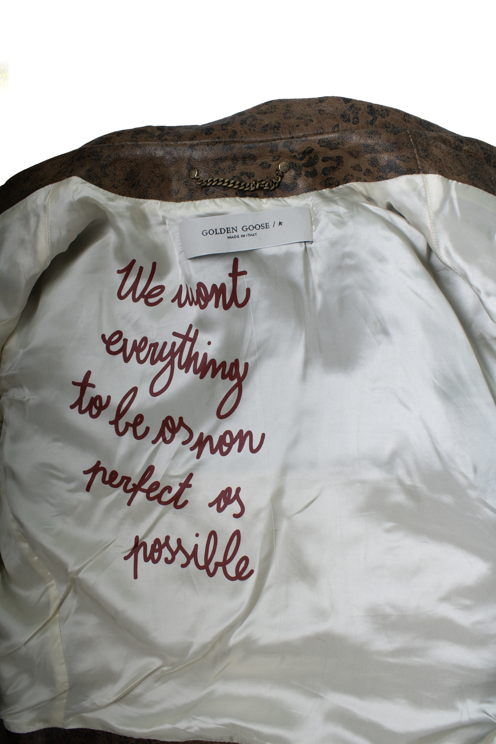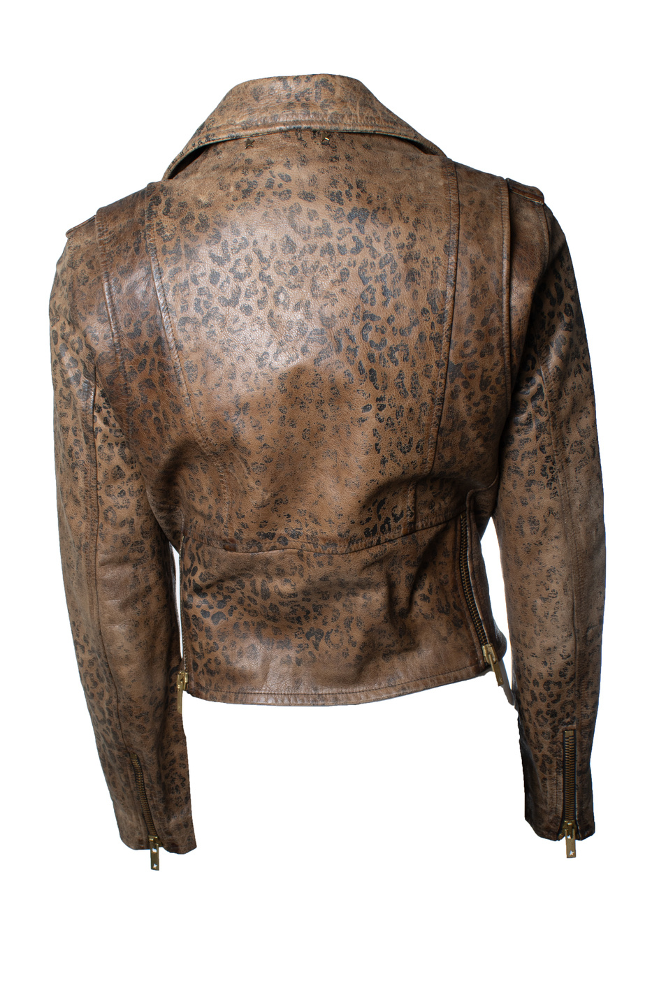 • Golden Goose, leren bikerjack met luipaardprint. Het artikel verkeert in zeer goede staat. Krasje achter de rits.