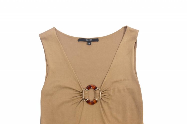 Gucci, marine blauw kleurige stretch top met Horsebit ornament in goud. Het product is in goede staat. Combineer en draag het met een leren koker rok en spitse pumps in zwart lak.
