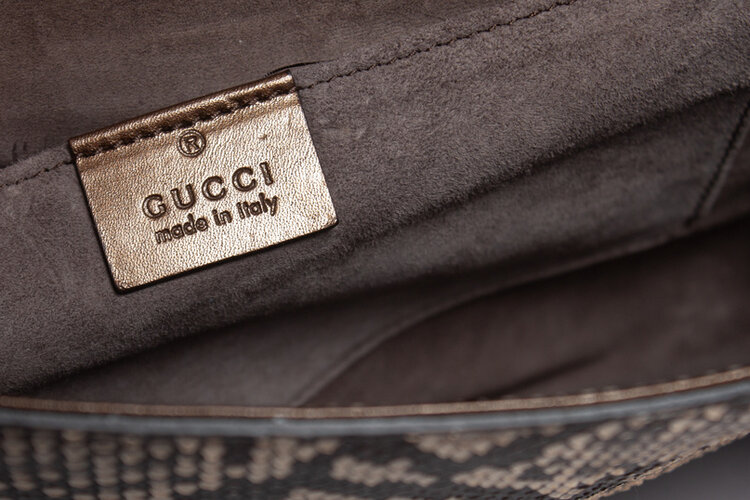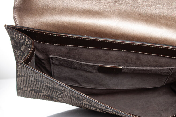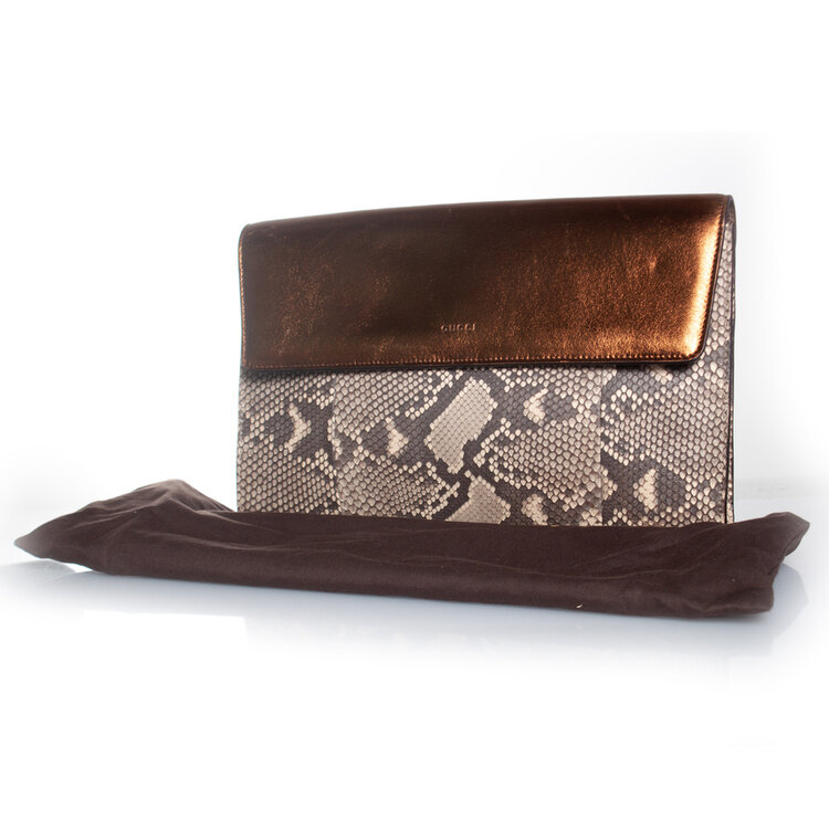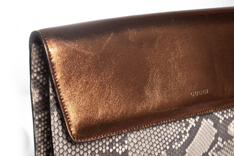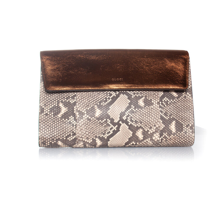 Gucci, clutch van pythonleer met metallic voorflap