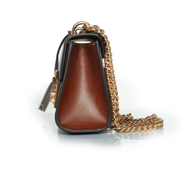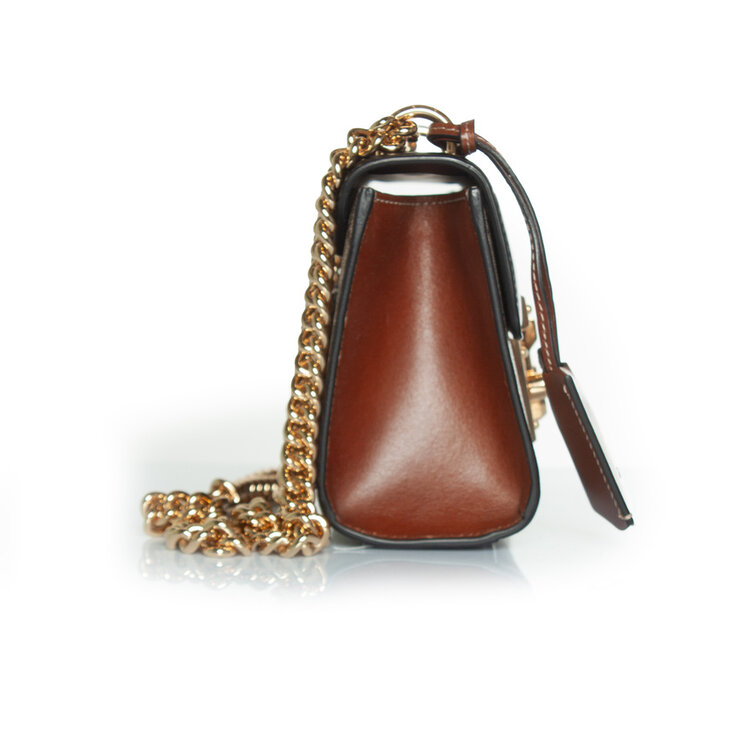 AFMETINGEN: hoogte 13 cm, breedte 20 cm, diepte 7 cm, drop double strap handvat 27 cm, lengte riem 100 cm