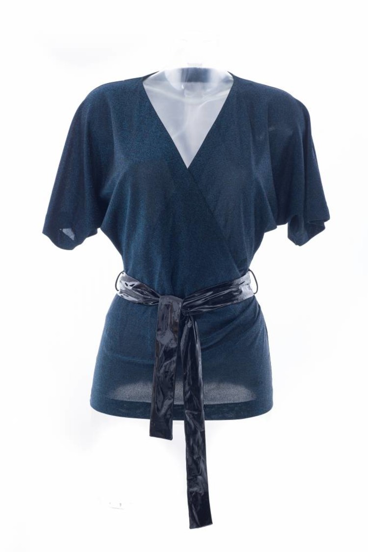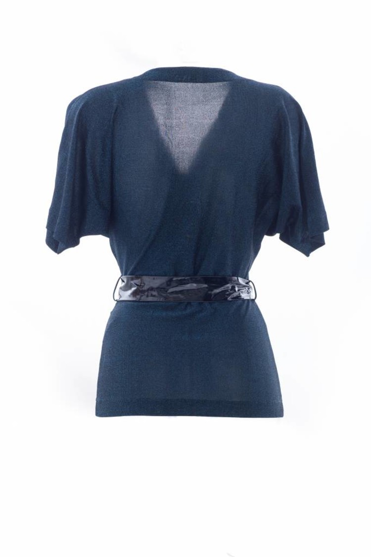 Marine blauw kleurige glitter top van The Galaxy lijn van Gucci met een lak ceintuur. Het product is in perfecte staat en is maar 1 keer gedragen.