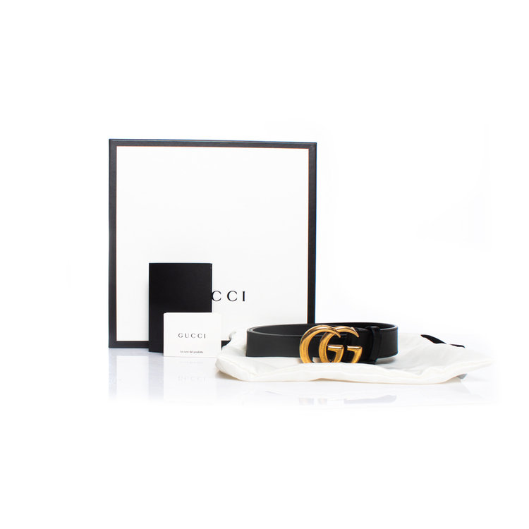 Een smalle leren riem met kenmerkende Double G-gesp. Gemaakt van glad leer.
