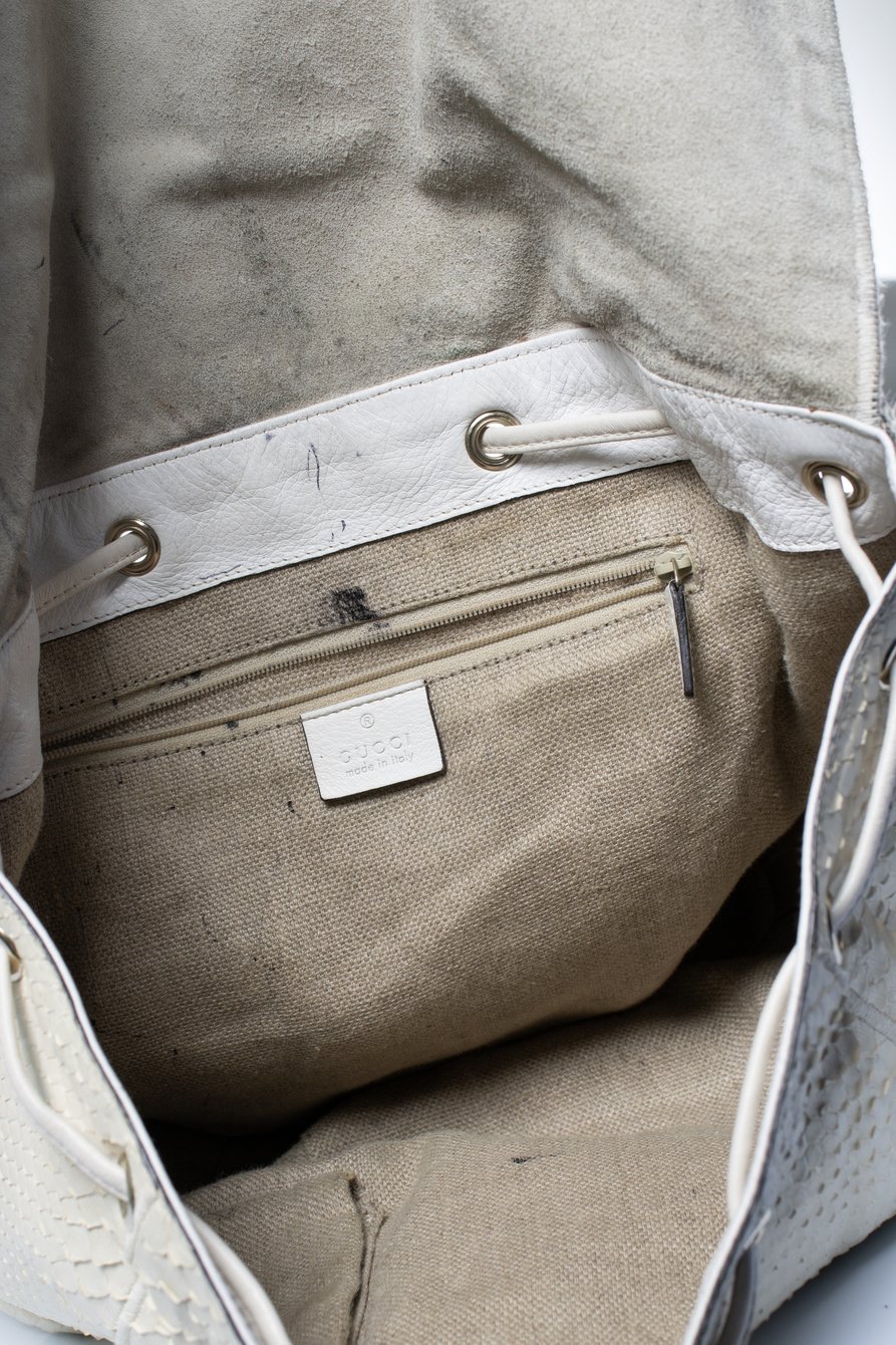 • Gucci, Tattoo Tribeca python messenger tas. Het artikel is volledig verkleurd. De binnenkant heeft ook vlekken.