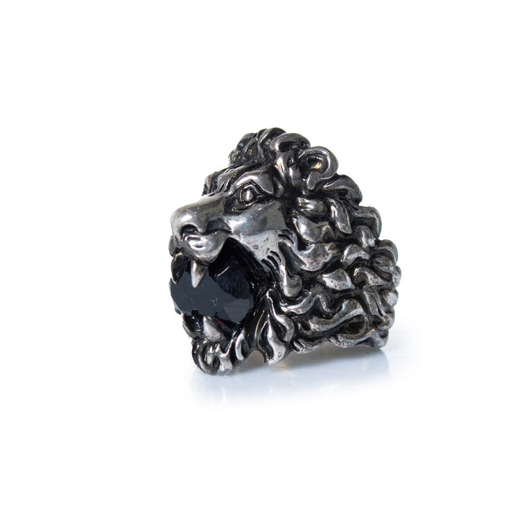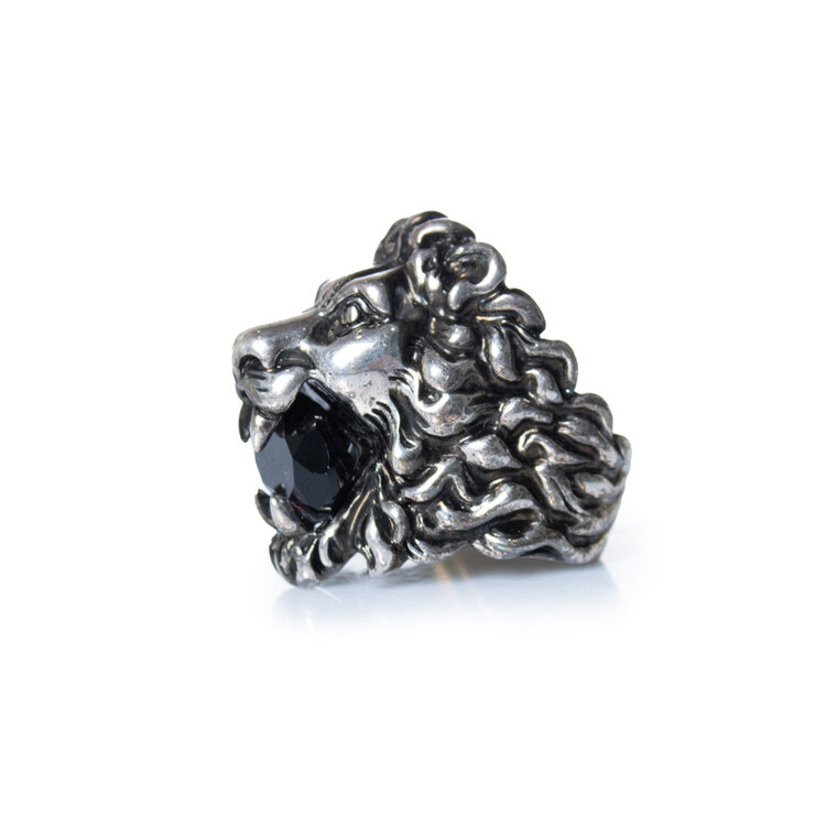 • Gucci, Unisex leeuwenkop ring met zwarte steen. Het artikel verkeert in zeer goede staat.