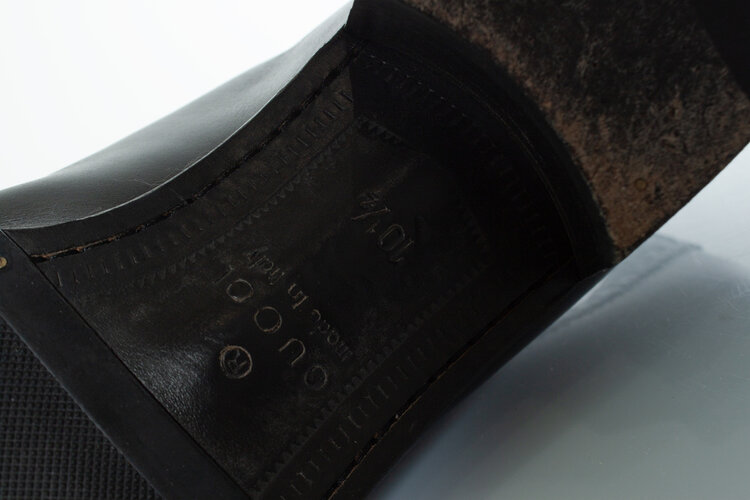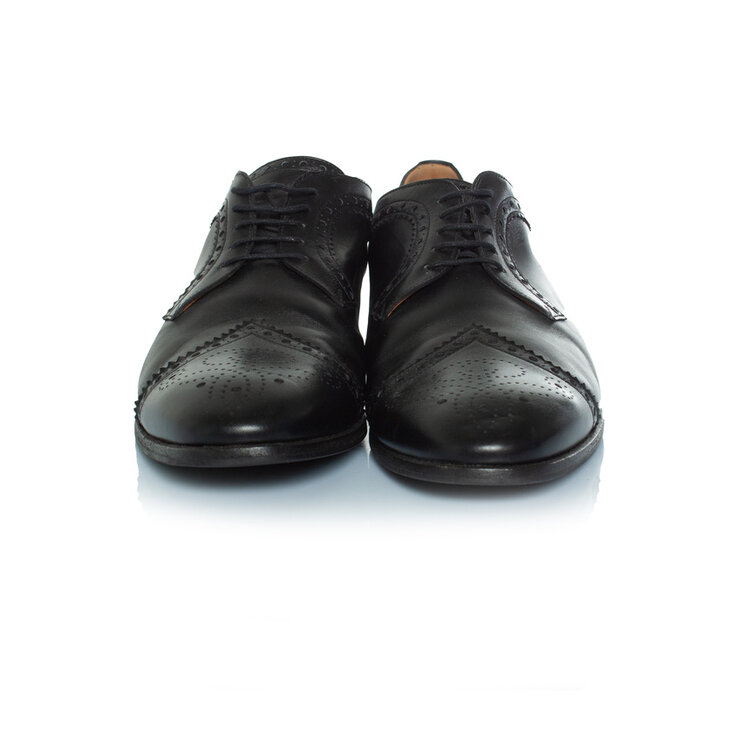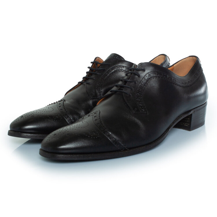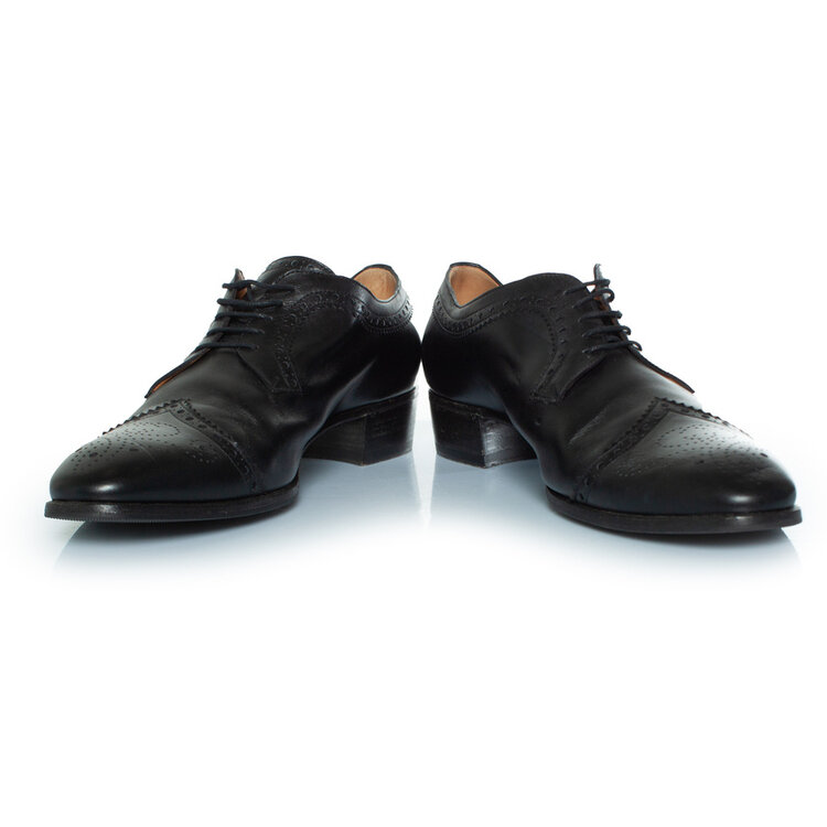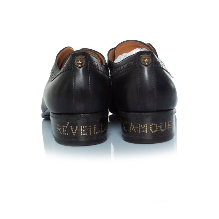 • Gucci, veterschoen van leer met gouden studs op de hak. Het artikel verkeert in zeer goede staat.