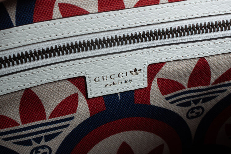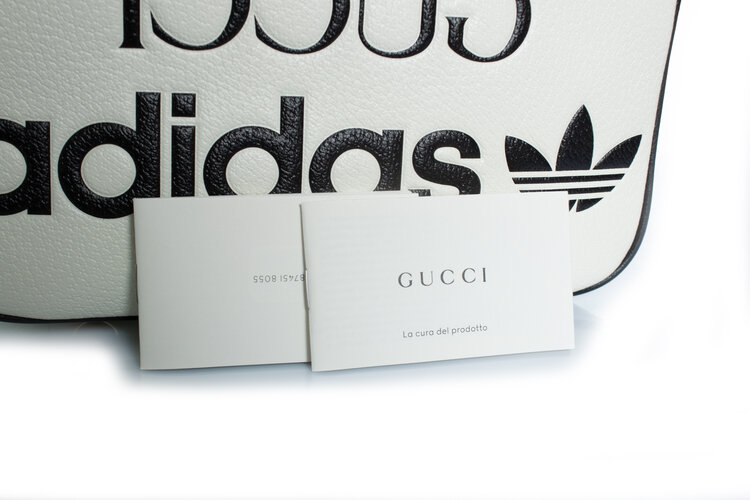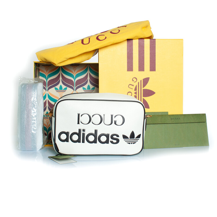 • Gucci X Adidas, crossbody tas in gebroken wit leer. Het artikel is nieuw met doos, stofzak en aankoopbon.