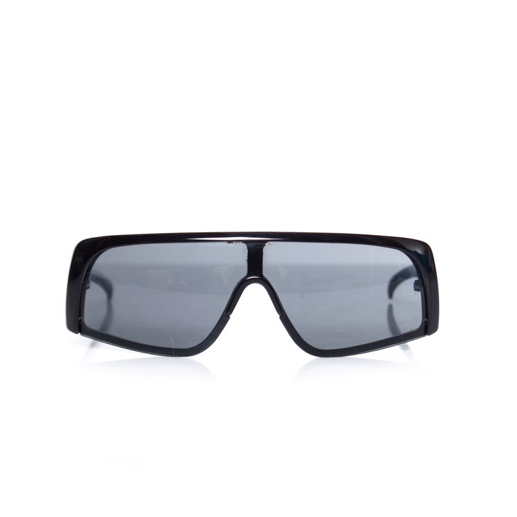• Gucci, zwarte futuristische zonnebril. Dit item is weinig gedragen en verkeert in zeer goede staat. Wordt zonder box geleverd. Gezien bij Lady Gaga.